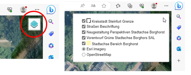 und Ausschalten der einzelnen Layer Oeffnet sich. Hier kann z.B. zwischen Luftbild und Karte gewechselt werden oder der